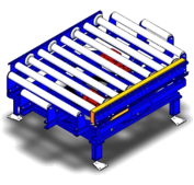 顶升移机-链条顶升移栽机 用途:电动升降和输送 四角位曲臂同步顶升,升降平稳,定位可靠 适用室内环境的托盘直角过渡、变向移载机主要由上部 的移载组件和下部的顶升部分组合而成。移载机辊道移 载机和链条移载机两种形式。辊道移载机的上部是辊道 移载组件,链条移载机的是链条移载组件。阻挡附件有 端部阻挡、驱动侧阻挡和从动侧阻挡可选 长度:最大长度为2000mm; 辊道移载机有效宽度可选820,1020,1120, 1220mm。(有效宽度指辊筒轴向两挡圈之间的内 宽,通常情况下有效宽度=托盘宽度+20mm) 链条移载机链条中心距可选700,850,950, 1050mm(一般链条中心距=托盘宽度-150mm)