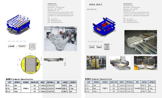 旋转滚筒输送机 电动驱动旋转和输送 结构简单紧凑,符合国际安全标准 模块化组合,安装、维护简便 旋转角度可达90°~180° 改变运行方向时托盘自身方向保持不变旋转台主要由上部的输送单元和下部的旋转单元等部分组成。输送单元按输送方式分为辊道输送组件和链条输送组件两种。 直径:最大为2000mm; 宽度:按标准托盘尺寸系列。 高度:输送面最低高度为500mm。